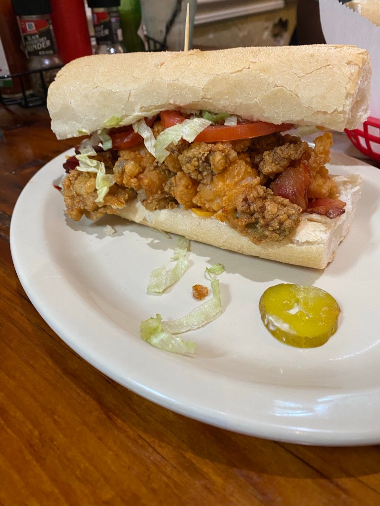 I’m not really a fan of Po-boys because of the amount of bread but for this place I’ll make an exception. Po-boys are a standard sandwich served on submarine sandwiches which mostly contain shrimp but this place also has short rib. Anyway, the one in the picture is called the Peacemaker. In it, there is fried jumbo gulf shrimp, cheddar cheese, bacon and of course we had it dressed. The first time I heard the word dressed and undressed on a sandwich was in Nola. Pretty much dressed is with lettuce, tomatoe, mayo and pickles. This sandwich was pretty good and it was definitely huge with lots of shrimp so I can’t even imagine getting the full sandwich. We did see someone get the full sandwich and it was bigger then his head with shrimp pieces coming out everywhere because of how much they stuff it. The bread is very good as well, it has a nice crunch to it but I think they put butter on the bread to make it even better. This is the kind of bread that doesn’t get stuck in your teeth like most submarine sandwiches. The bread is also soft. I must say, they know exactly how to put together a good Po-boy sandwich. In addition to the sandwiches they have onion rings that are thin cut. Yes, thin cut onion rings. All you need is some bbq sauce, ketchup or leave it plain and it’s so good. If you’re up for it try their short rib. The short rib is cooked just right and I think you’ll enjoy it for sure. Mahony’s is a nice small place and our server had us laughing the entire time.