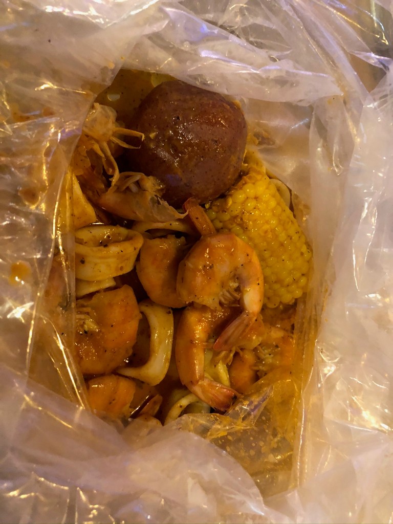 In times like this, you can definitely eat more then you would like because of how accessible it is but stay grounded. This next place is Hook and Reel, a new place that they opened up recently in Union. The picture above is the 1/2 pound of calamari and 1/2 pound shrimp (head off). The sauce that I selected was the Hook and Reel special blend mild with potatoes and I have to admit that it was good. The sauce has some garlic but with a little bit of old bay on it which is good. I think it contained something else but I can’t put my finger on it. The boil came out pretty quick which I was taken aback by but it turned out to be well. The shrimp was steamed just right but the only downside was that I still had to peel the shrimp but it added to the experience. The calamari wasn’t for me so next time, I’ll have to try the crabs which looked tasty. In addition to the boil, I had the cajun fries which were surprisingly tasty. I’ll definitely be coming back here at some point and hopefully it’s consistent which is always a plus.
