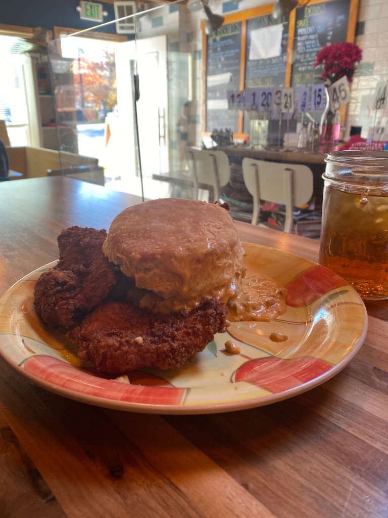 First time in Seattle and I was so looking forward to this trip. Sorry it took so long Seattle but I kind of miss it already. Okay, to the food. Look, I had this and I can’t even remember what this is because I can’t find it anywhere. But hey if you show them this picture I’m sure they will figure it out for you. I must say, to describe it, it’s a fried chicken with a biscuit and gravy. The gravy is with little bits of sausages. Look I’m not a gravy fan but this was amazing. This gravy was on point okay. It’s their special kind of in house gravy but the it’s the best combination for the fried chicken. The fried chicken was fried to perfection and it was seasoned just right even without the gravy. I don’t like chicken that you have to add so much to to make it taste good. That shouldn’t be chicken, let alone fried chicken. I like the spices and it had a good amount of heat but not too hot. I would say this in my top five of chicken that I’ve tasted outside of places in New York. Now the biscuit. The biscuit was huge and I forgot to add that there was plenty of pieces of chicken as well. I don’t think the picture does this enough Justice. This could easily be shared between two people as it was quite filling. The biscuit isn’t your normal biscuit. This might be exaggerating but I really think the biscuit was as big as my hand. That’s how thick and big it was. I would’ve liked the outside of the biscuit to be softer but I think it was still okay. I think if you’re in Seattle you have to go even though it may be out of the way to visit. Oh a few particulars. The place doesn’t have much seating since it’s small and they only serve half and half if you’re getting coffee which I wouldn’t suggest. If you are getting coffee, there is a place next to it which serves coffee. Lastly, it can take a bit to get the chicken since I believe they fix it once you get it which is good so that it can hot…Enjoy the holiday. Hope you spend it with those that you hold dear to your heart. Talk soon.
