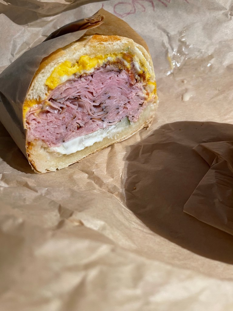 Now I can say I don’t eat many cold cut sandwiches but this sandwich right here named Porky is well deserving. If you’re looking at the picture, you can see how much meat is put into this sandwich. The only other place that I can say comes close to putting this much meat into a sandwich is Our Hero’s in Jersey City and it’s less than half the cost. The Porky sandwich consists of Black Forest ham, bacon, American cheese, pickles, board sauce (don’t ask me what it is but it’s slamming), and mayo, all on a garlic french roll. I know it’s a lot of items for one sandwich but it’s needed for this sandwich to taste really good. I tried eating this sandwich with my hands and it started to get a little messy so I had broken it down into manageable pieces and it worked out better. The ham was cooked to perfection and the bacon on top added the nice subtle crunch. If you’re wondering about how salty it was, I can say it wasn’t as salty as you think. It did have salt but for some reason I didn’t find it to be overpowering or overwhelming to the point of me not eating it, so it was just right. Credit goes to the chef making this for sure. I would suggest to definitely order the waffle fries with mick sauce and do ask for more mick sauce because it was really good with the fries. Also the sandwich is pricey so if you can share with someone that would be ideal as I found it filling for one person to eat half the sandwich with fries. Enjoy it and don’t be fooled by where it’s located as for me it did seem further from other local restaurants.