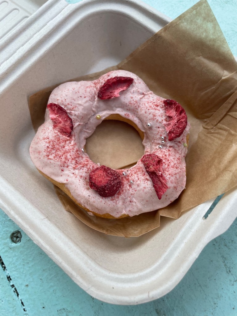I wish I could say that I tried some of their famous mochi cream puffs but I didn’t. It was a spur of the moment stop and I didn’t even look to see what they were famous for before going. I did try the regular strawberry mochi donut, pictured above, which is a Japanese rice cake. Let me say that the texture is very chewy which is similar to rice. It was a bit hard to chew for sure. It is gluten free so it’s a interesting take on a donut being that it’s makeup is of rice. I think it’s definitely a try to see if you like it but just know it’s not a traditional donut. I also tried the Passion Fruit Green Tea which was good and you could tell they put time into making their drinks because it was well prepared. If you’re in the area, it’s a must try and it will be very IG worthy.