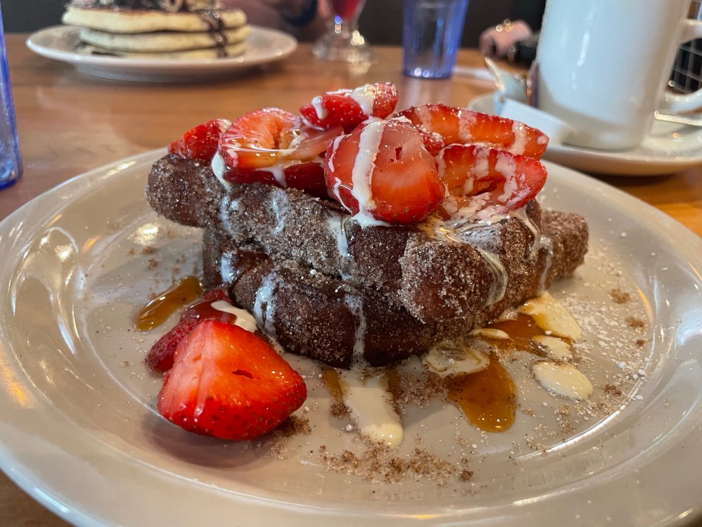 Let me just start by saying that I’ve been to their original location in JC but it unfortunately closed down. Let’s just say that it might be a good it did close down. I say that because sometimes a chapter must close in order for the next one to begin. The original wasn’t all that good but this location in Edgewater is way better. Now only if Urban Griddle was reading this. Sigh. Anyway, pictured above is the Churro French Toast. The French Toast is all but amazing. It has the combination of the brown sugar, sugar, cinnamon, and has the all around taste of a churro and yes this French Toast was fried. When I tasted it, I was like dang, could I have more than two though? It was just that good. It was airy, sweet and it taste just right. The strawberries and even adding that (free) maple syrup on top and it was outrageous. This is the second place that I’ve been to that you do not have to pay for maple syrup which is a 👍🏾 and 👌🏾 in my book. Thankfully, I went on a Saturday and there was no wait but I will say this isn’t a place that you should probably want to do that at because it will be busy unless you get there early. Valet parking is available which I thought was interesting but I understand because of how small the parking lot is. This place is a must go but I would say don’t try the bacon, you’ll be disappointed. Hopefully I’ll be back soon.